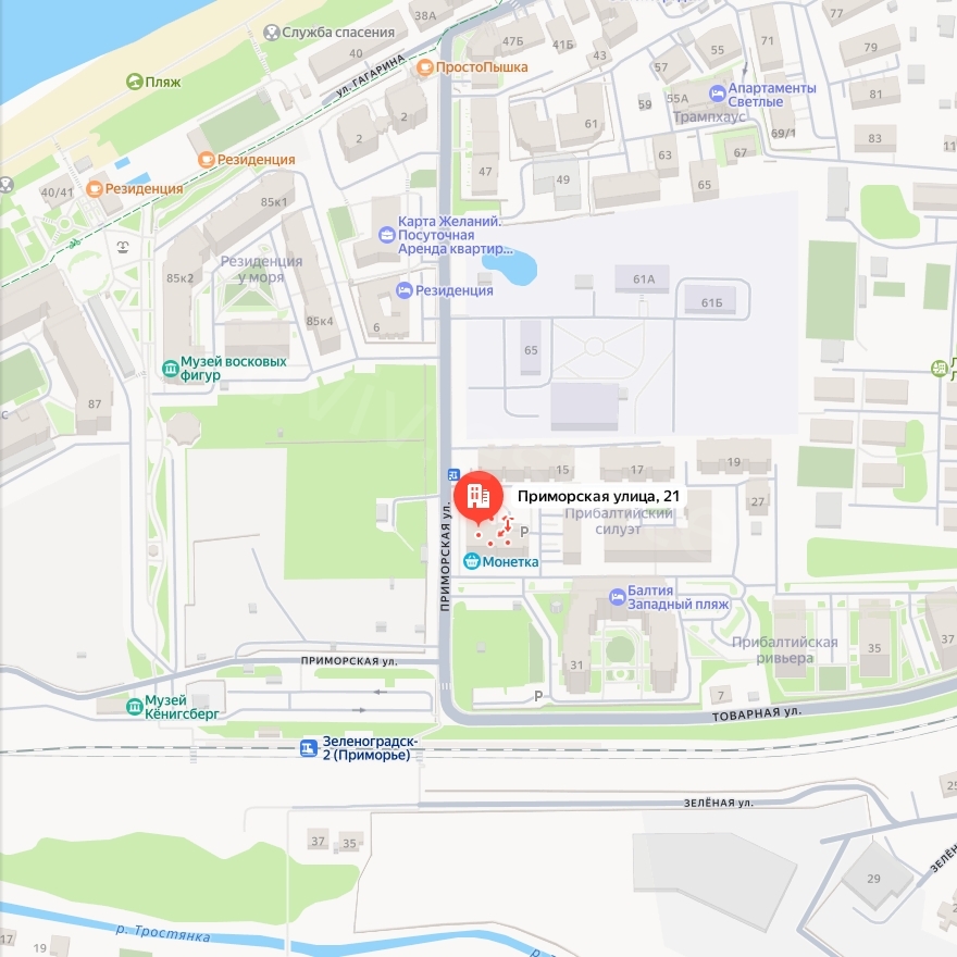 Адрес: Калининградская обл., р-н Зеленоградский, г. Зеленоградск, ул. Приморская, дом 21 пом. VI